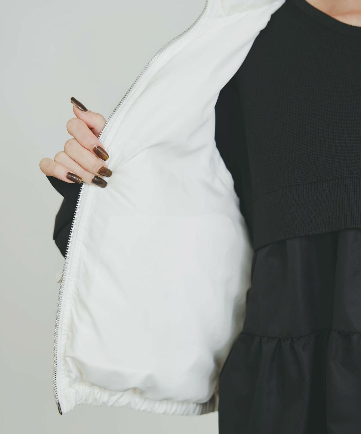 裾ファー切り替えダウンベスト