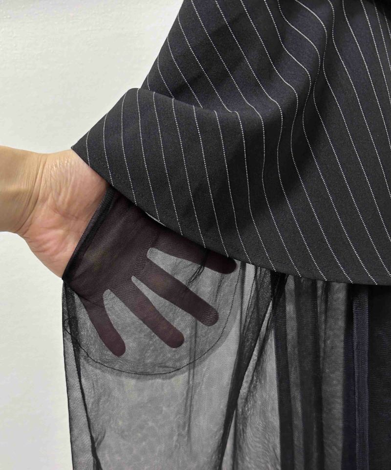 大人のおしゃれ心をくすぐるロングチュールテーラードカラージレ
