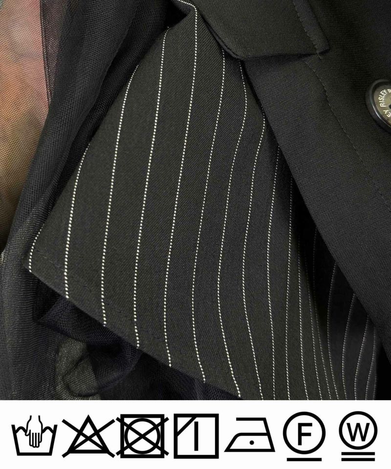 素材 | 本体/表地: ポリエステル96%,ポリウレタン4% 裏地: ポリエステル97%,ポリウレタン3% ストライプ部分: ポリエステル90%,レーヨン7%,ポリウレタン3% 切り替え部分: ポリエステル97%,ポリウレタン3% チュール部分: ナイロン100% |