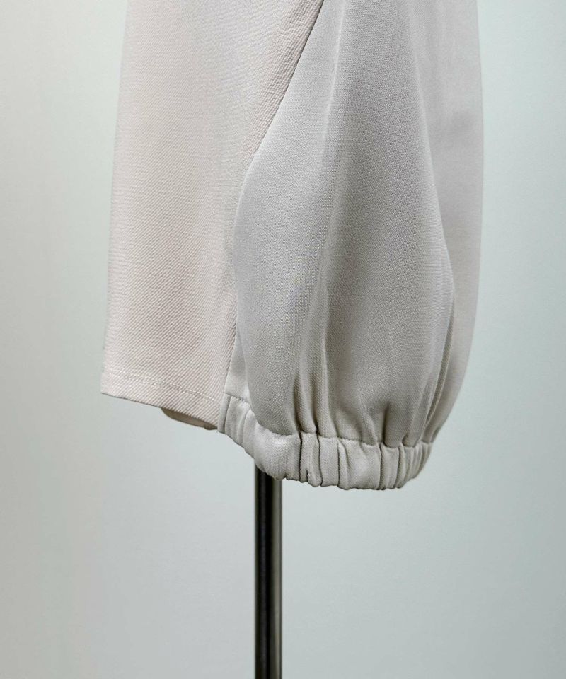 前身頃に、プリントを施した杢調の合繊素材を大胆に切り替えた鮮度あるデザイン。