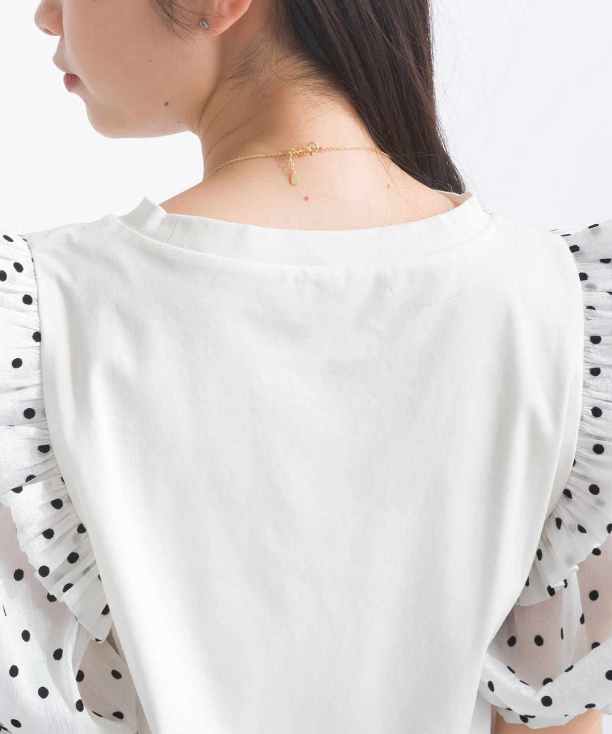 袖ドットフリルカットソー