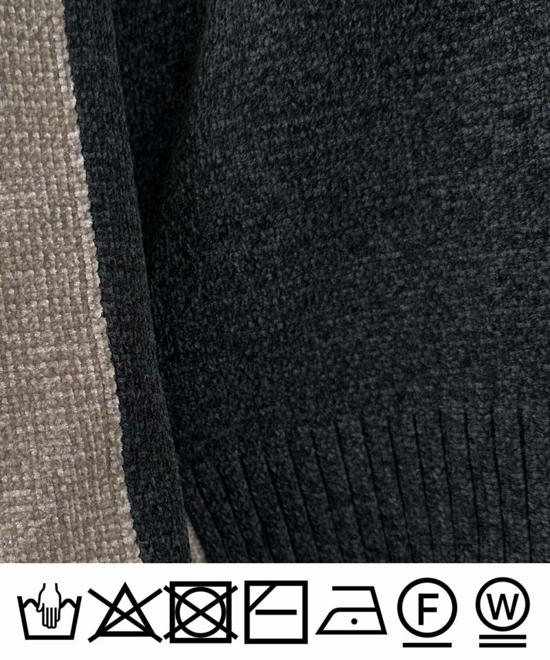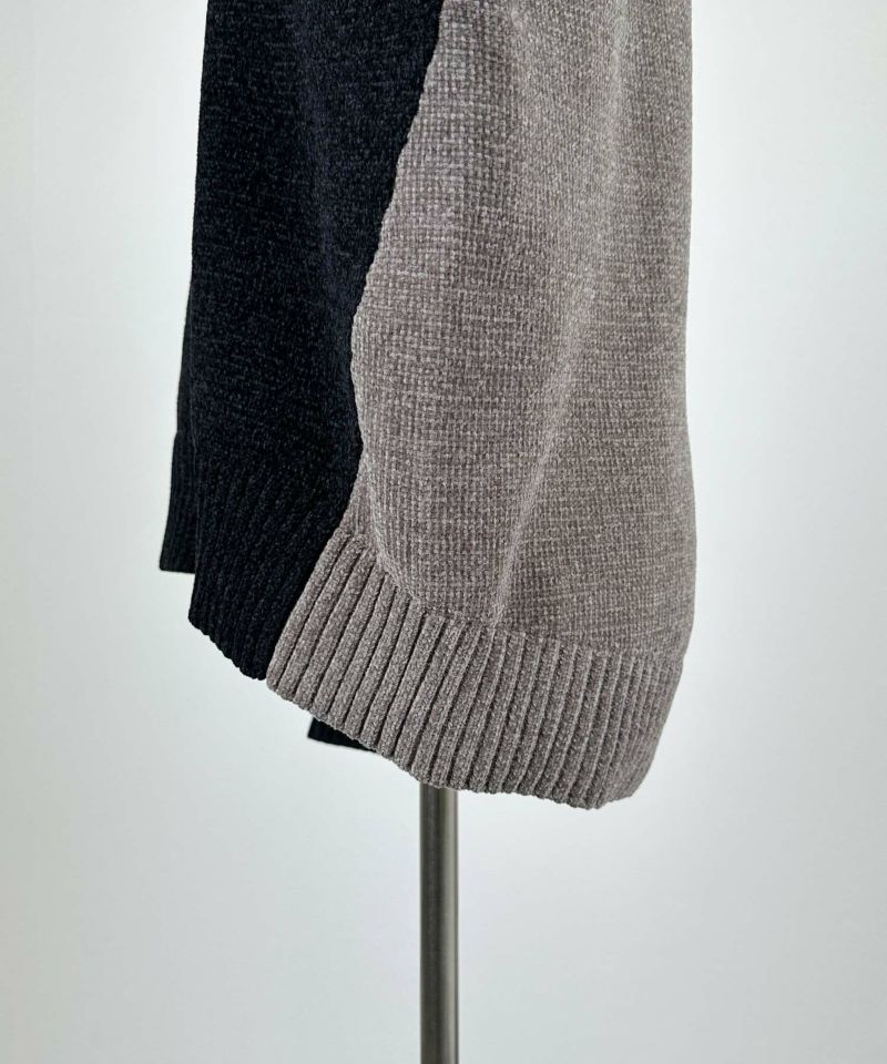 柔らかく滑らかな肌ざわりのモールニットを使った配色ニット。