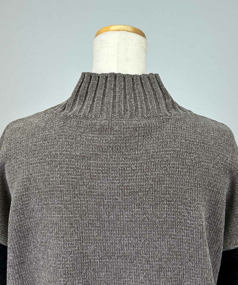 柔らかく滑らかな肌ざわりのモールニットを使った配色ニット。