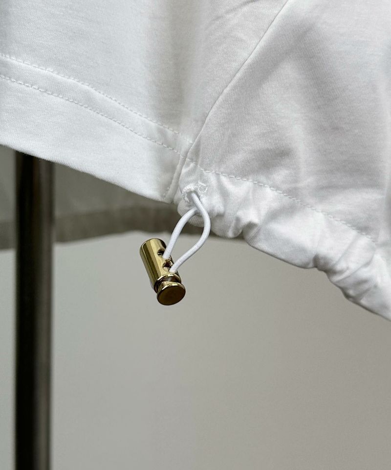後ろ長めのデザインに後ろだけ入ったドロストを絞れば、ぷっくりと空気をはらんだようなコクーンシルエットに。