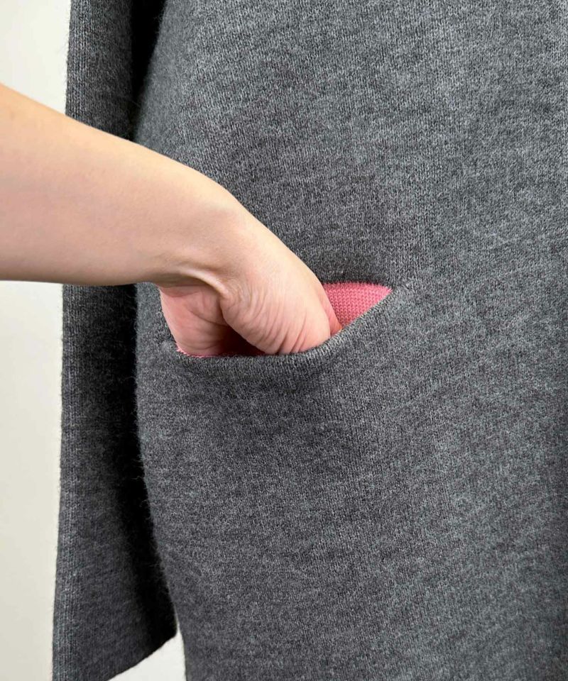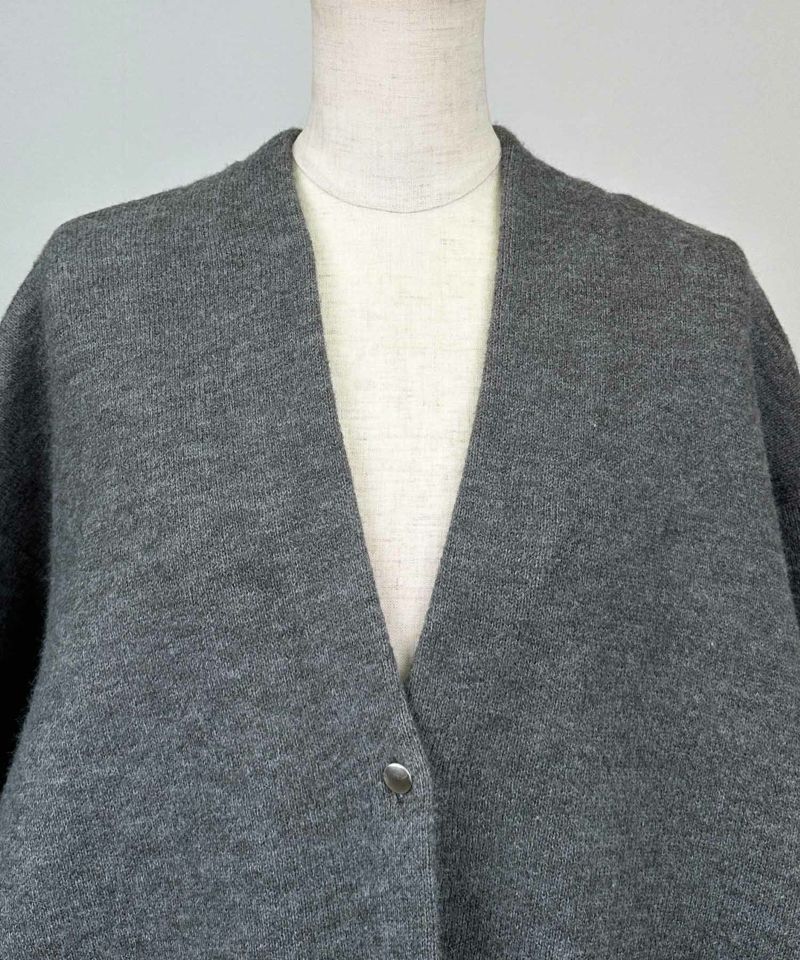 シンプルなV開きのフロントに、ボタンはひとつだけ。ゆるさと上品さのバランスが、大人の余裕を感じさせます。