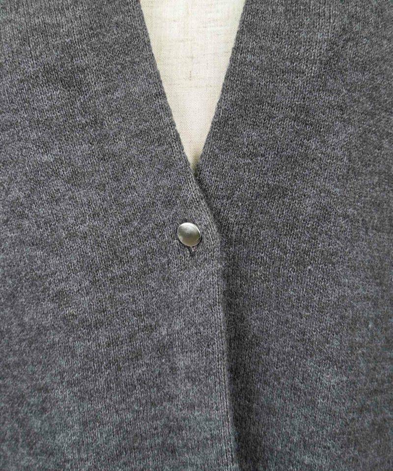 シンプルなV開きのフロントに、ボタンはひとつだけ。ゆるさと上品さのバランスが、大人の余裕を感じさせます。