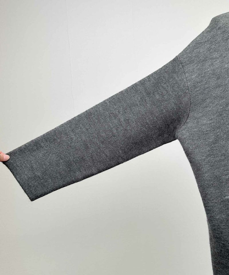 シンプルなV開きのフロントに、ボタンはひとつだけ。ゆるさと上品さのバランスが、大人の余裕を感じさせます。
