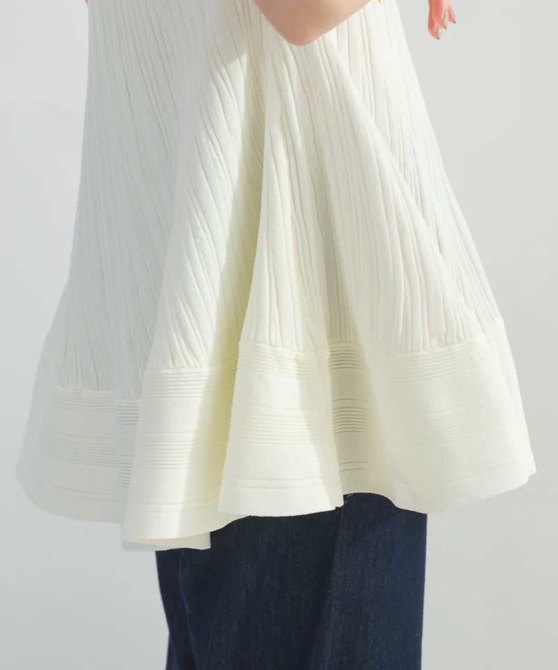 ランダムリブニットの独特な表情と、裾の異なる編地が絶妙なアクセントに。