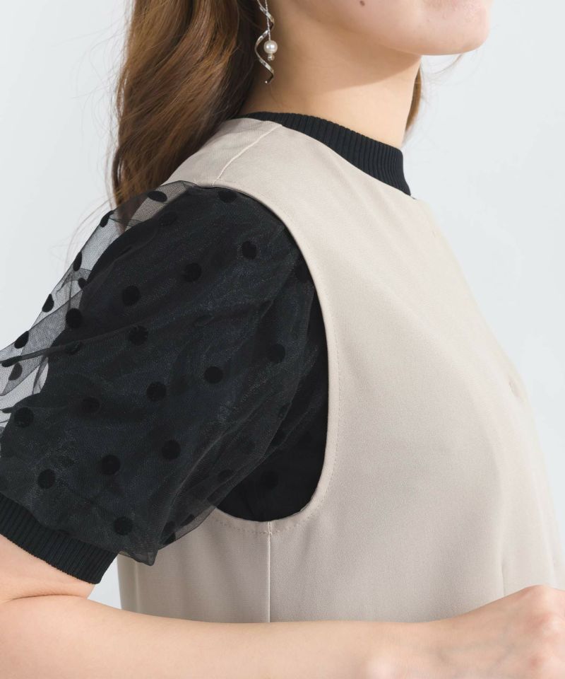 切り替え下のタックとペプラムシルエットにより女性らしいラインが引き立ち、大人スタイルが華やぎます。