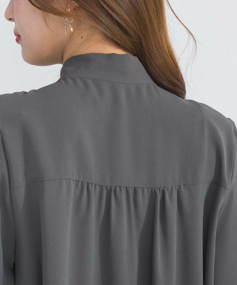 前後の切り替え部分や袖口にはギャザーが施され、女性らしいシルエットを作り上品な印象を与えてくれます。