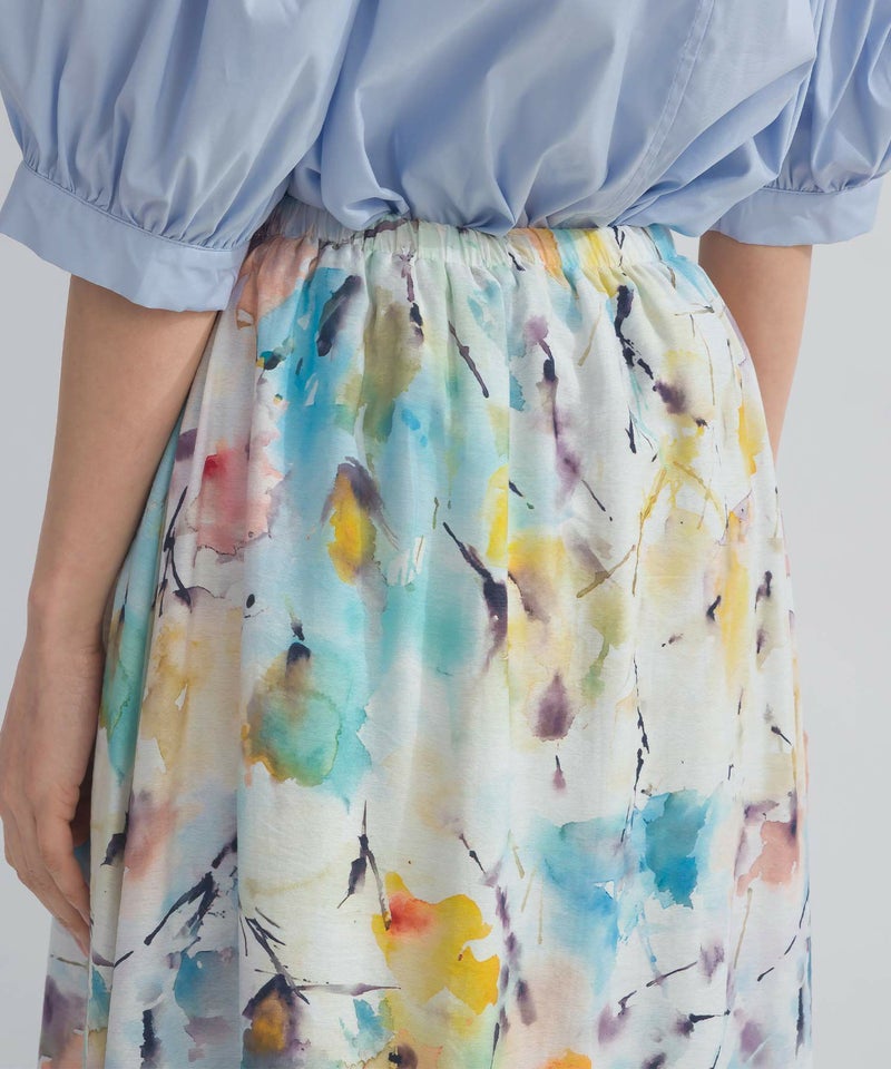 淡いフラワープリントが華やぐ上品なスカート。
