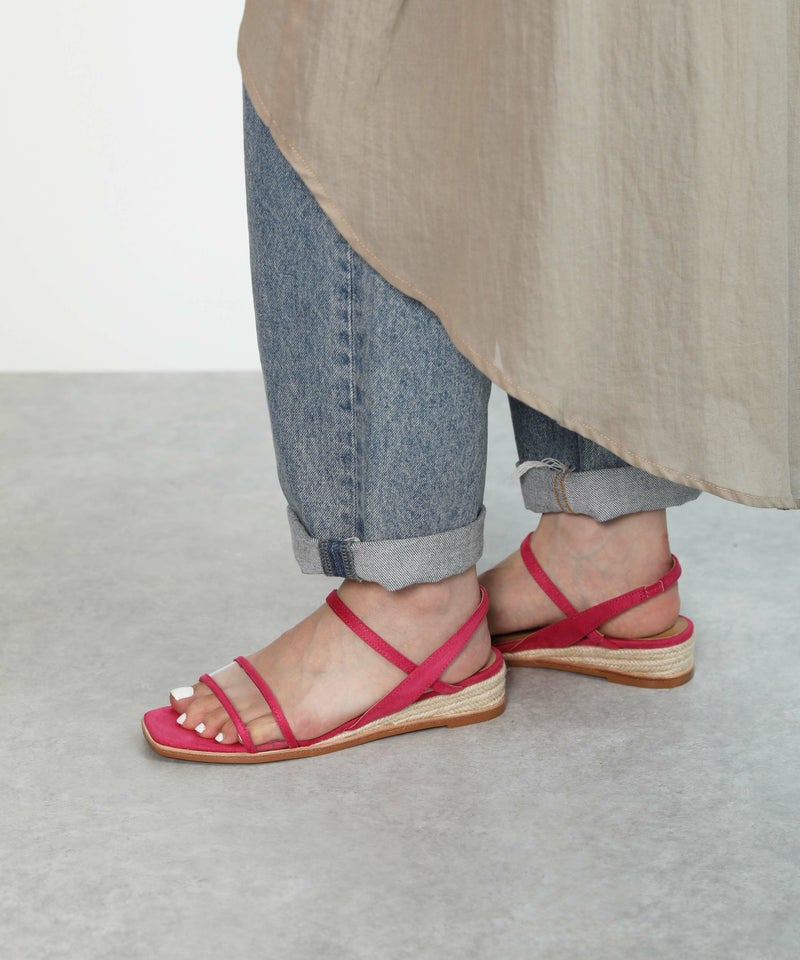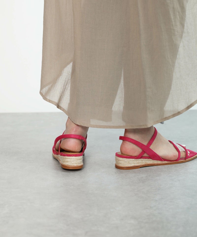 ジュート巻きヒールとクリアストラップの清潔感あふれるサンダル