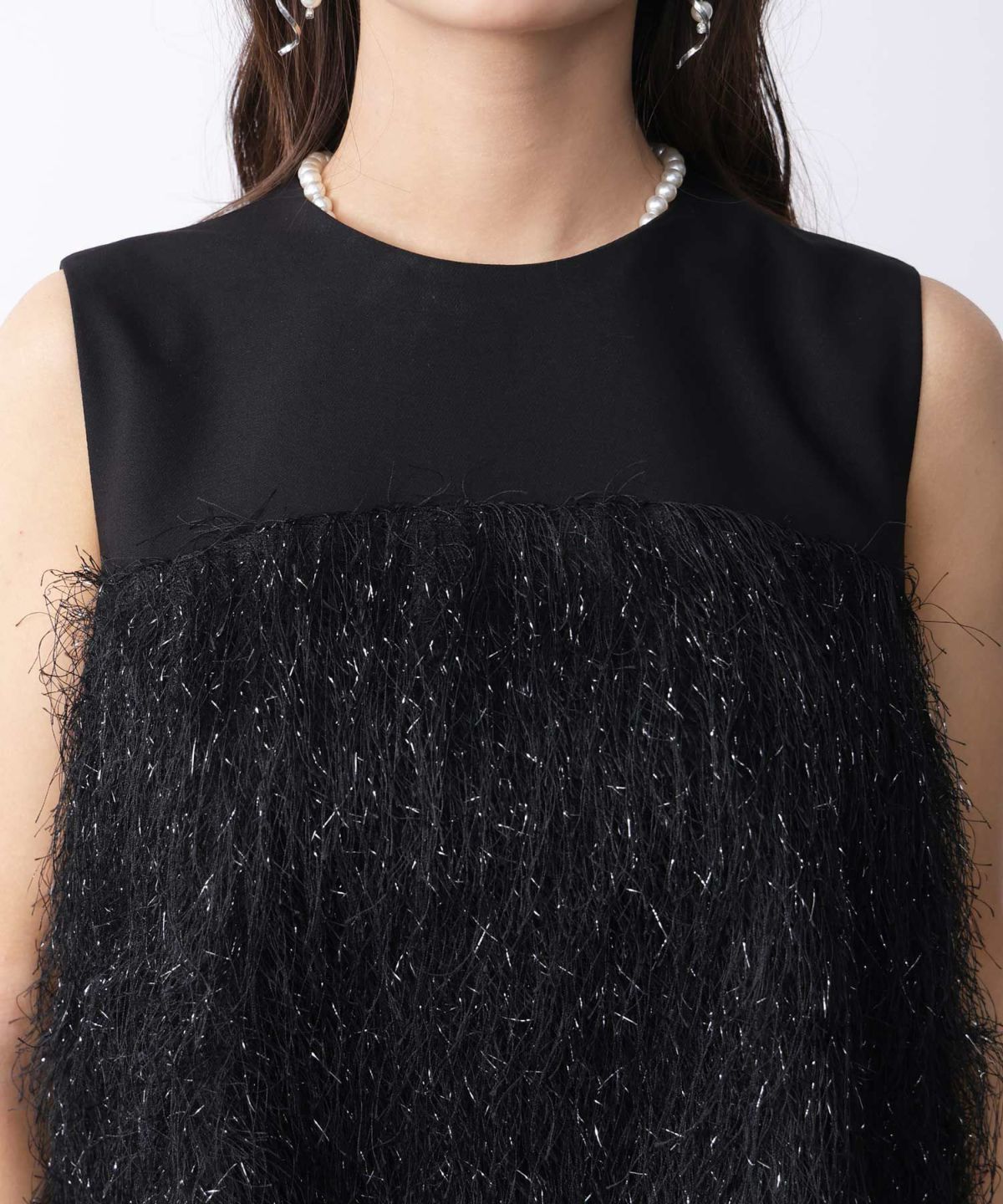 フェザー切り替えノースリーブブラウス