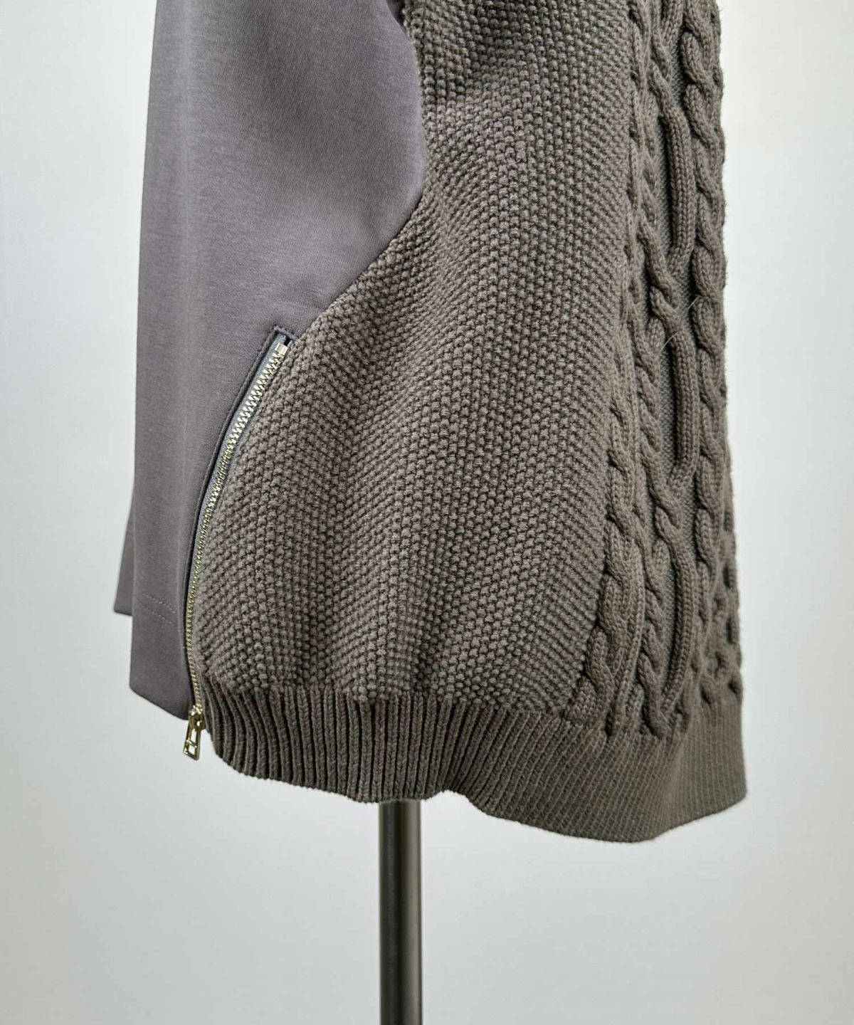 フード付畔編みロングジレ