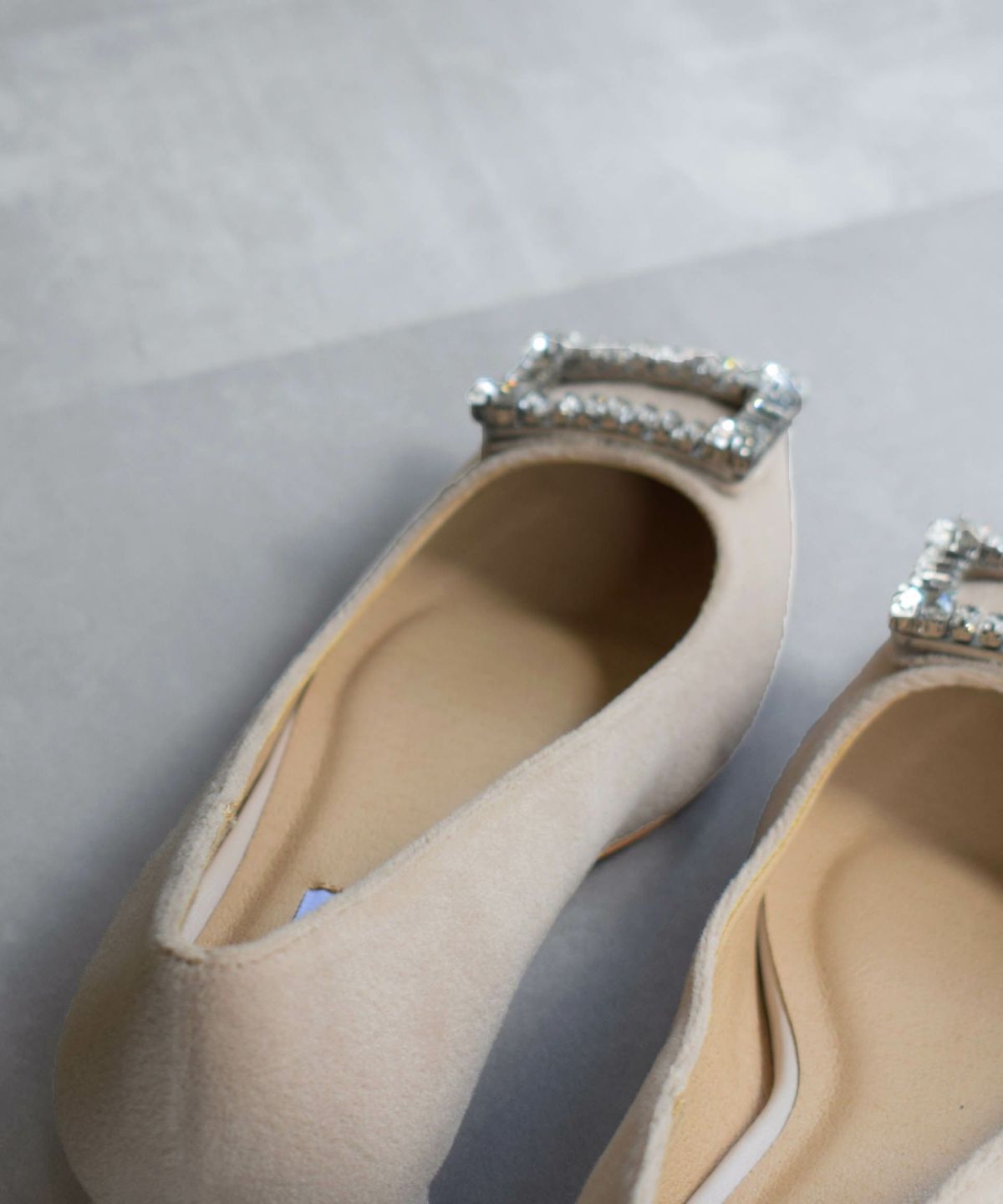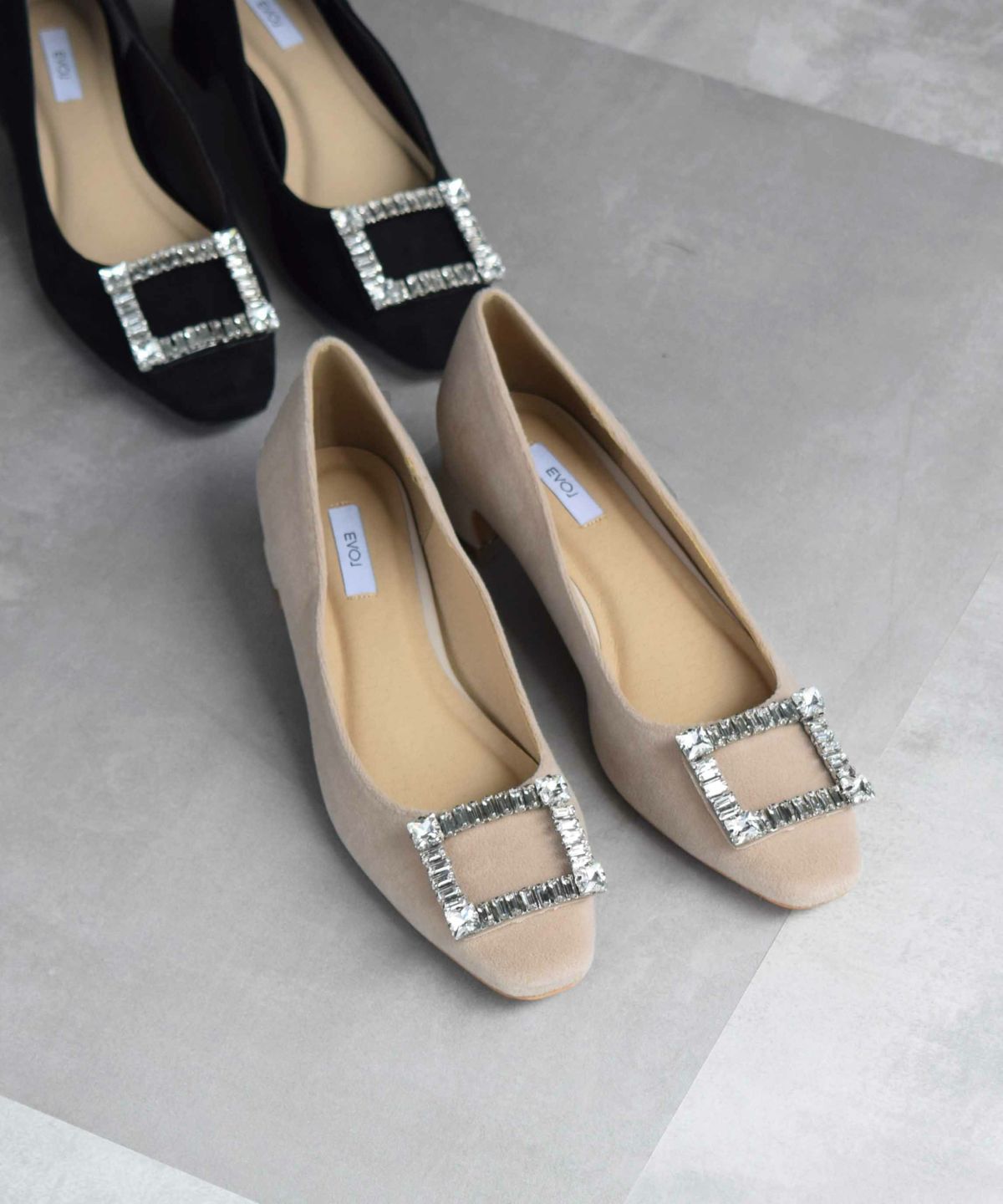 ビジューバックルミドルヒールパンプス