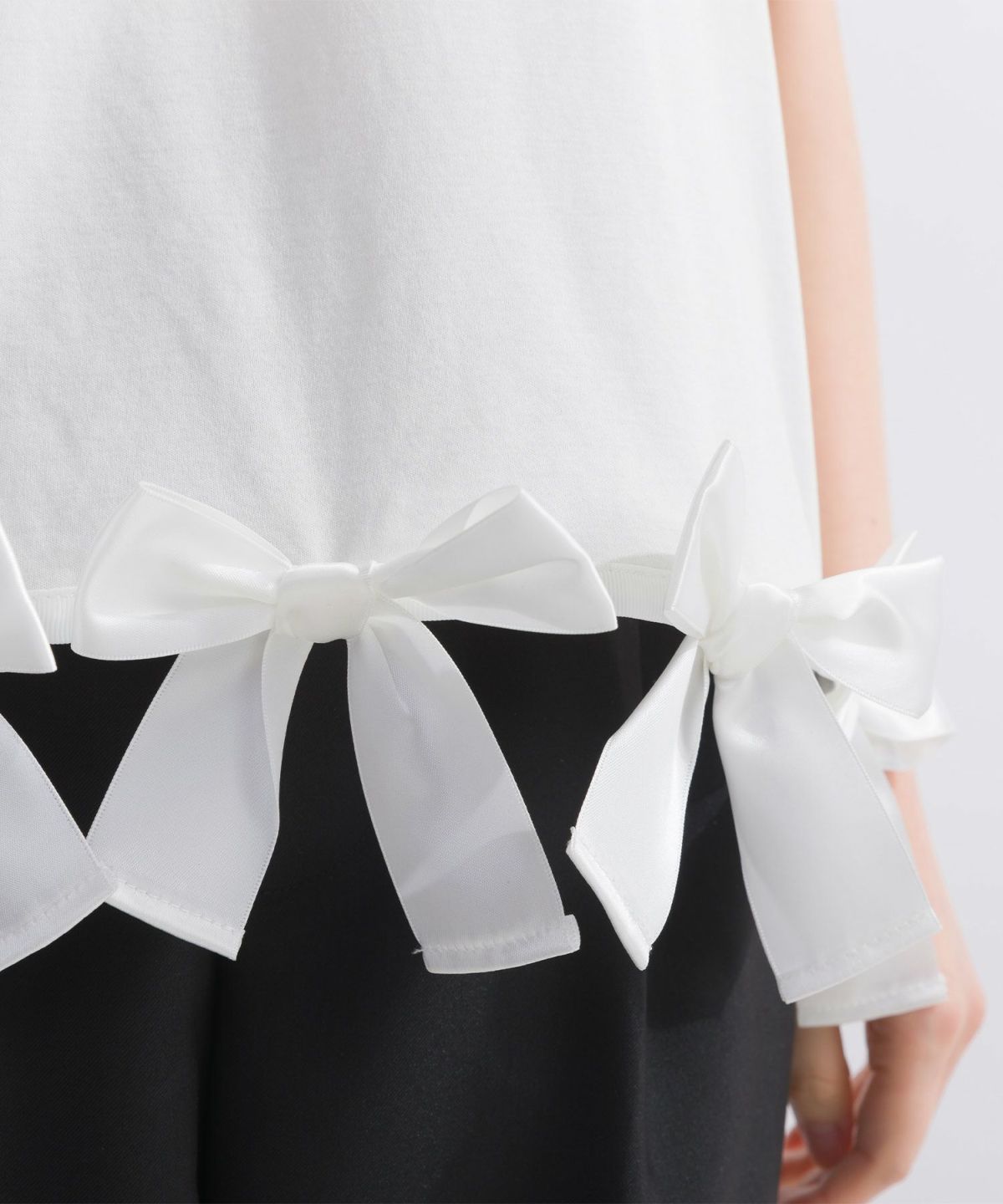 裾リボンタックスリーブコットンカットソー