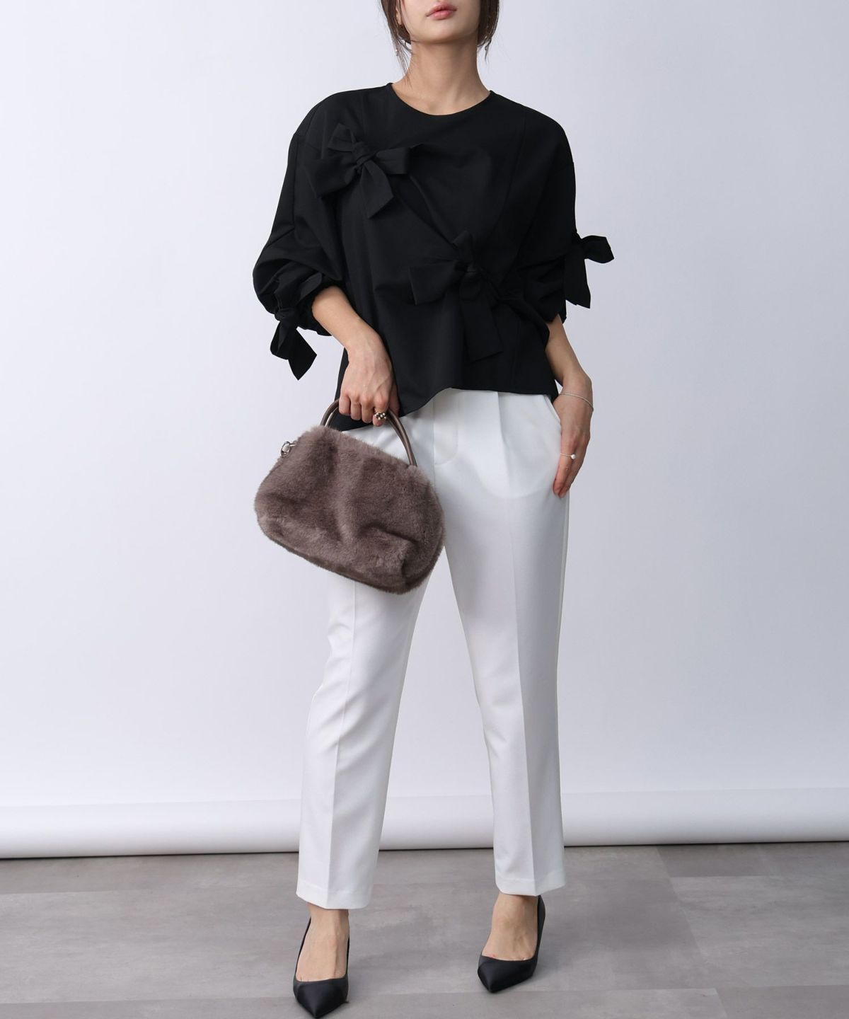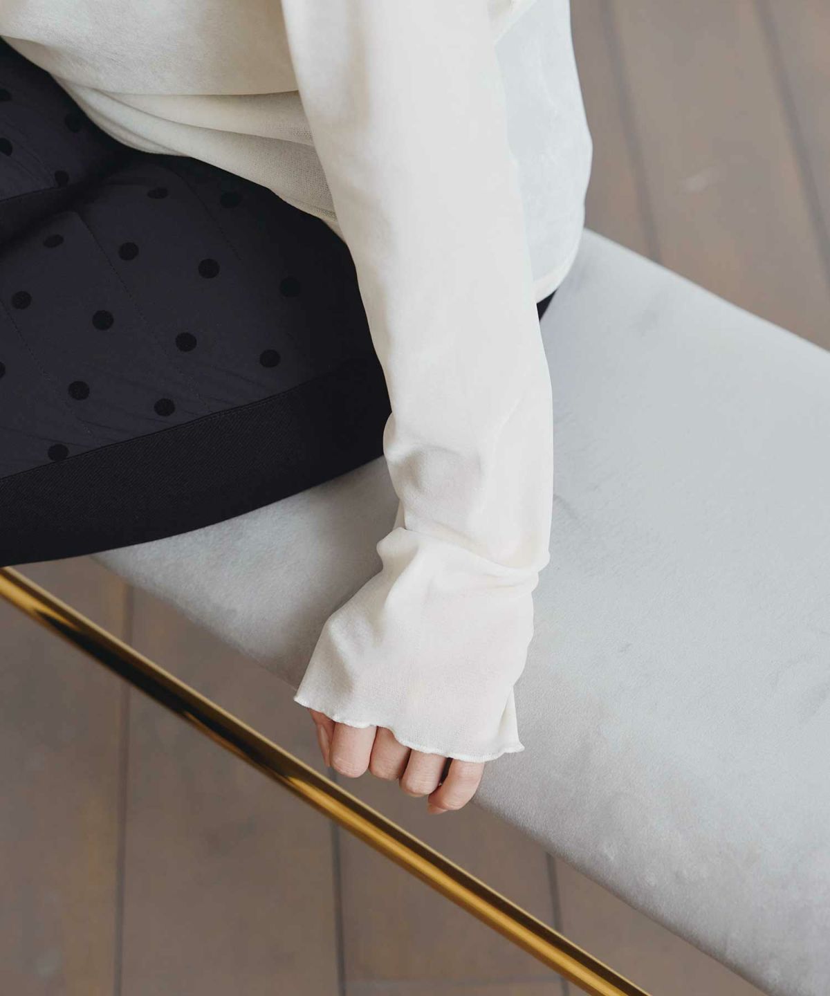 袖シャーリングシアーブラウス