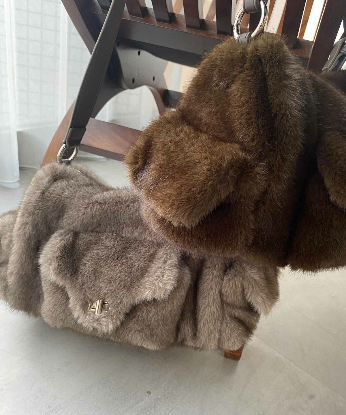 フェイクファーフラップポケット付き2wayショルダーバッグ