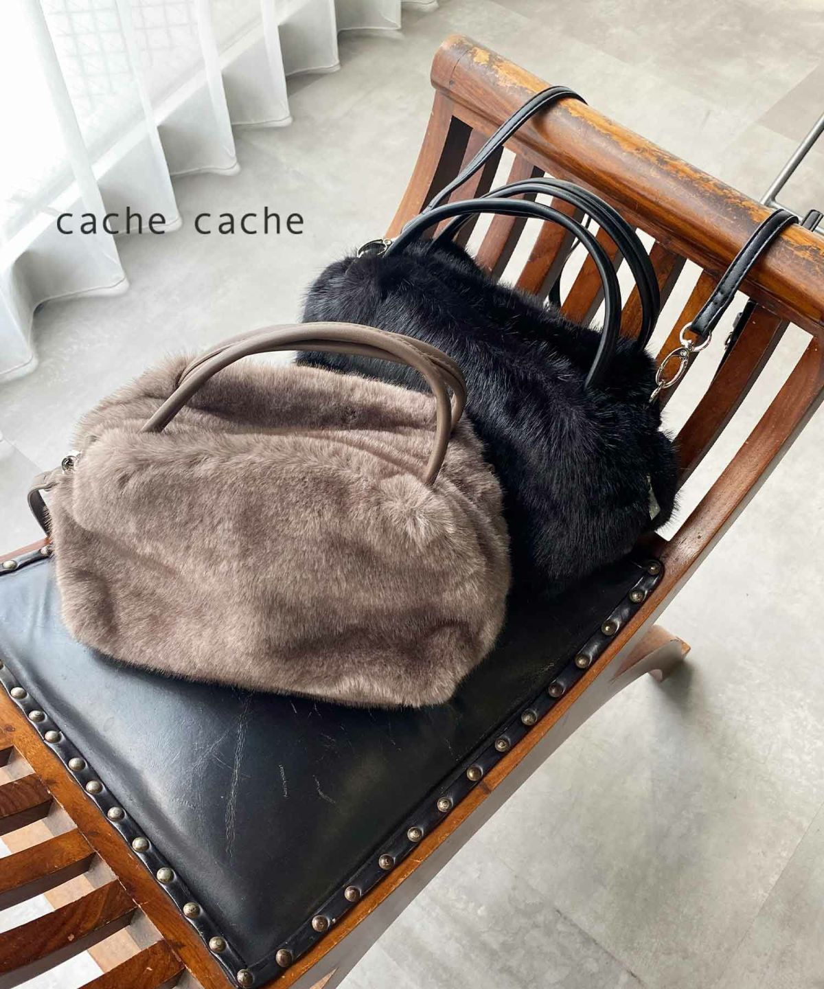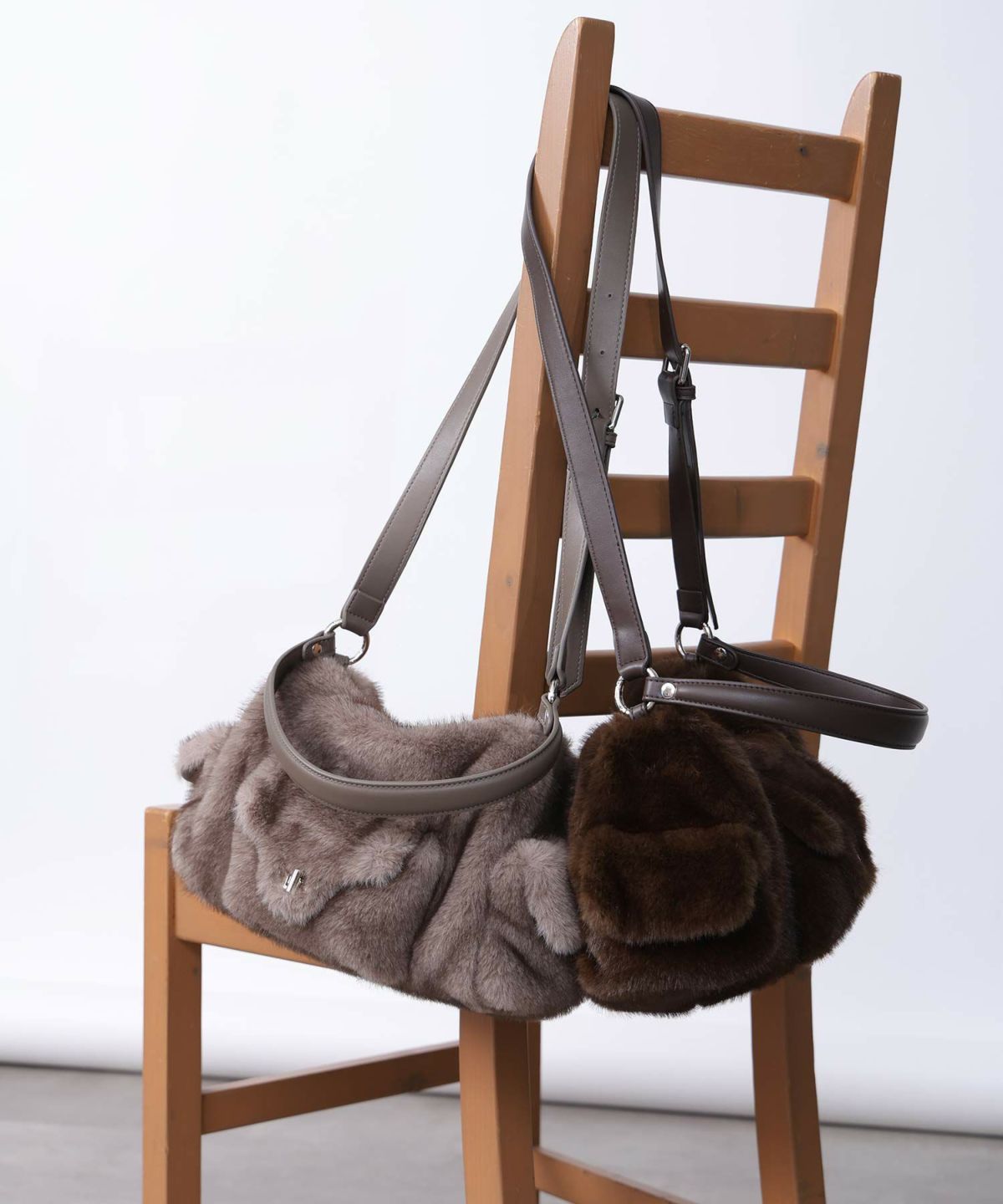 フェイクファーフラップポケット付き2wayショルダーバッグ