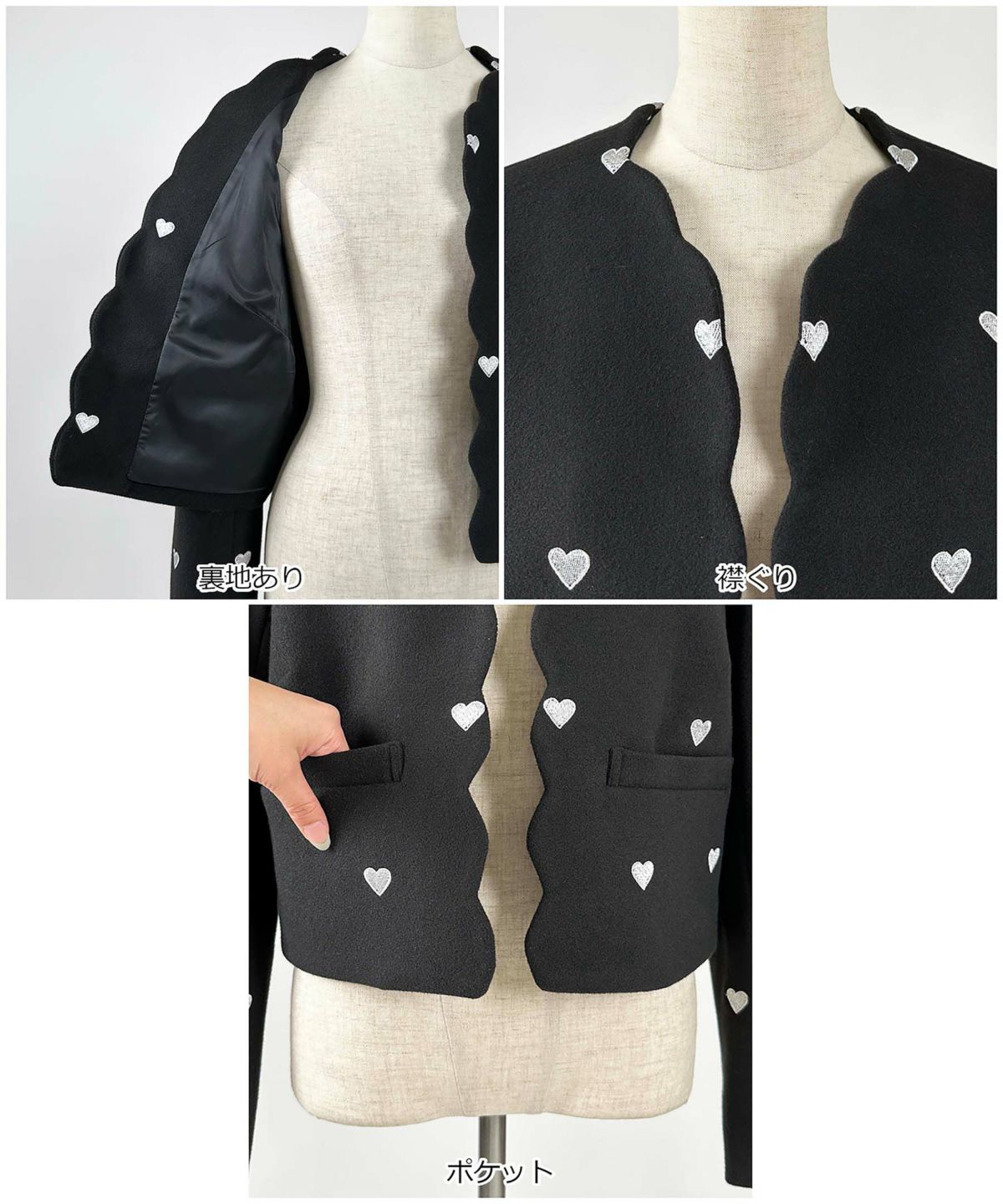 ハート刺繍スカラップジャケット