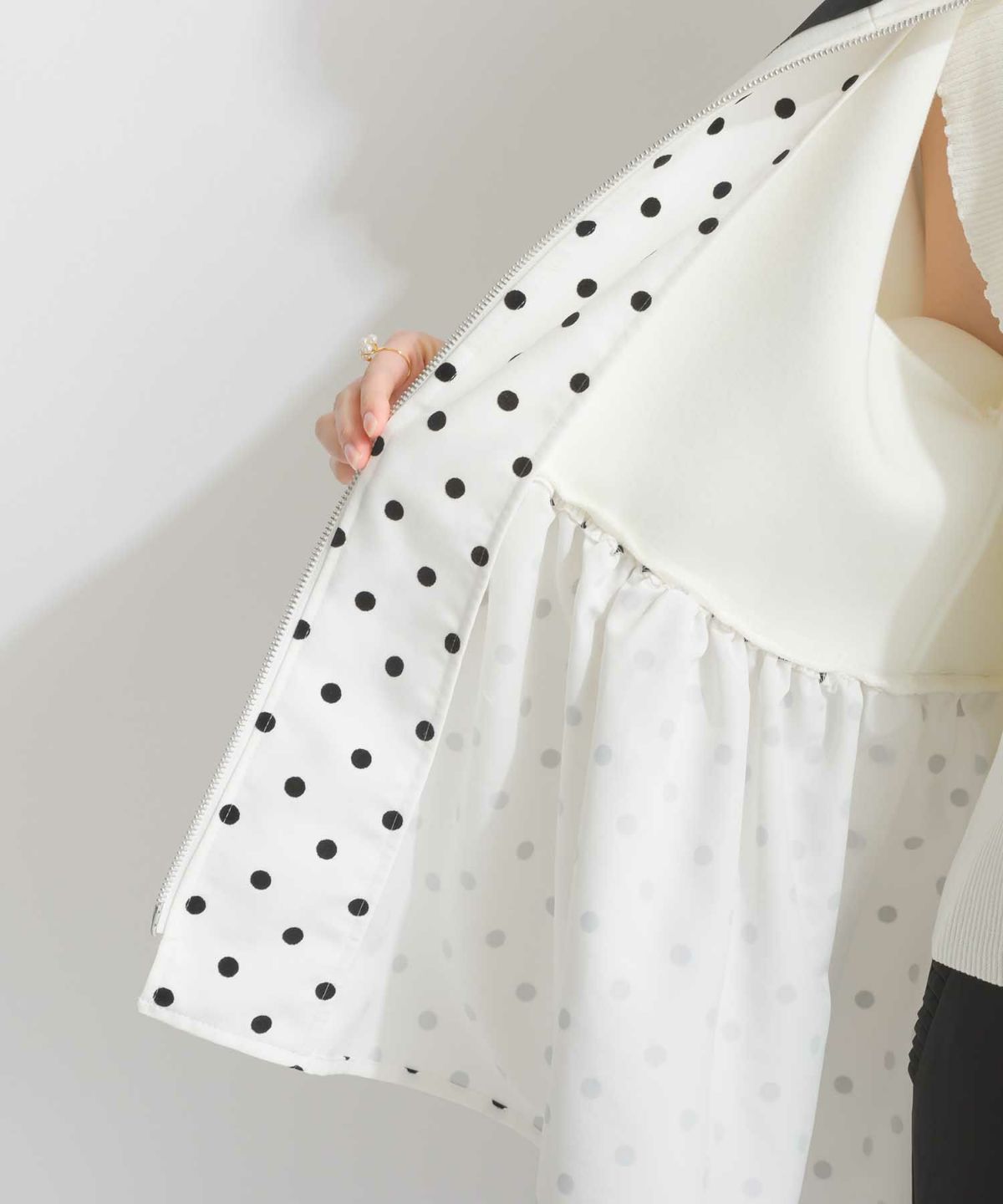 裾フロッキードットフードパーカー
