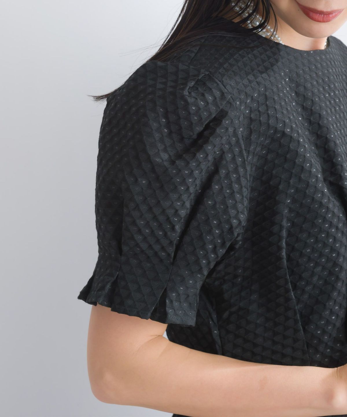 【セットアップ可能】フロッキードットペプラムブラウス