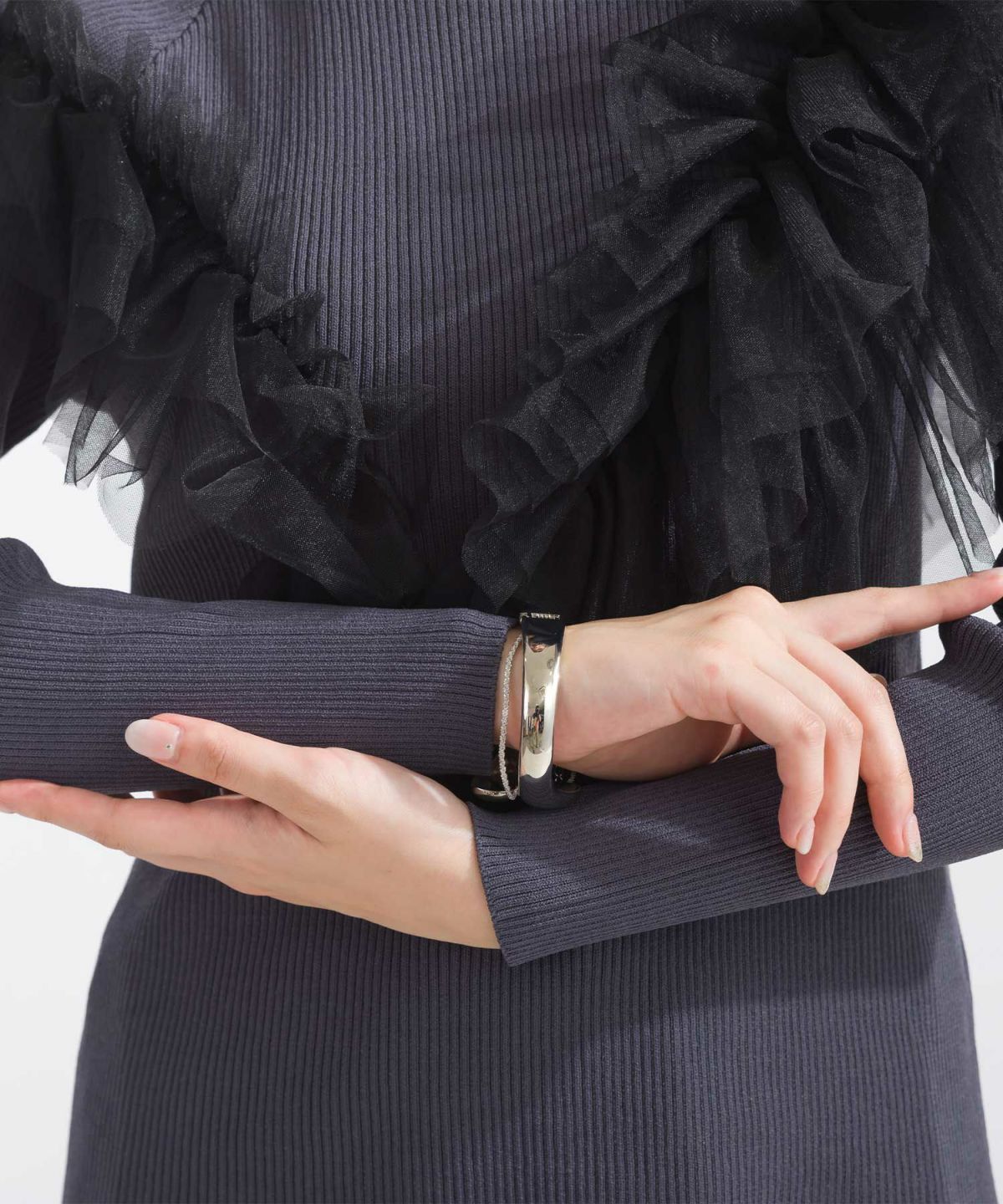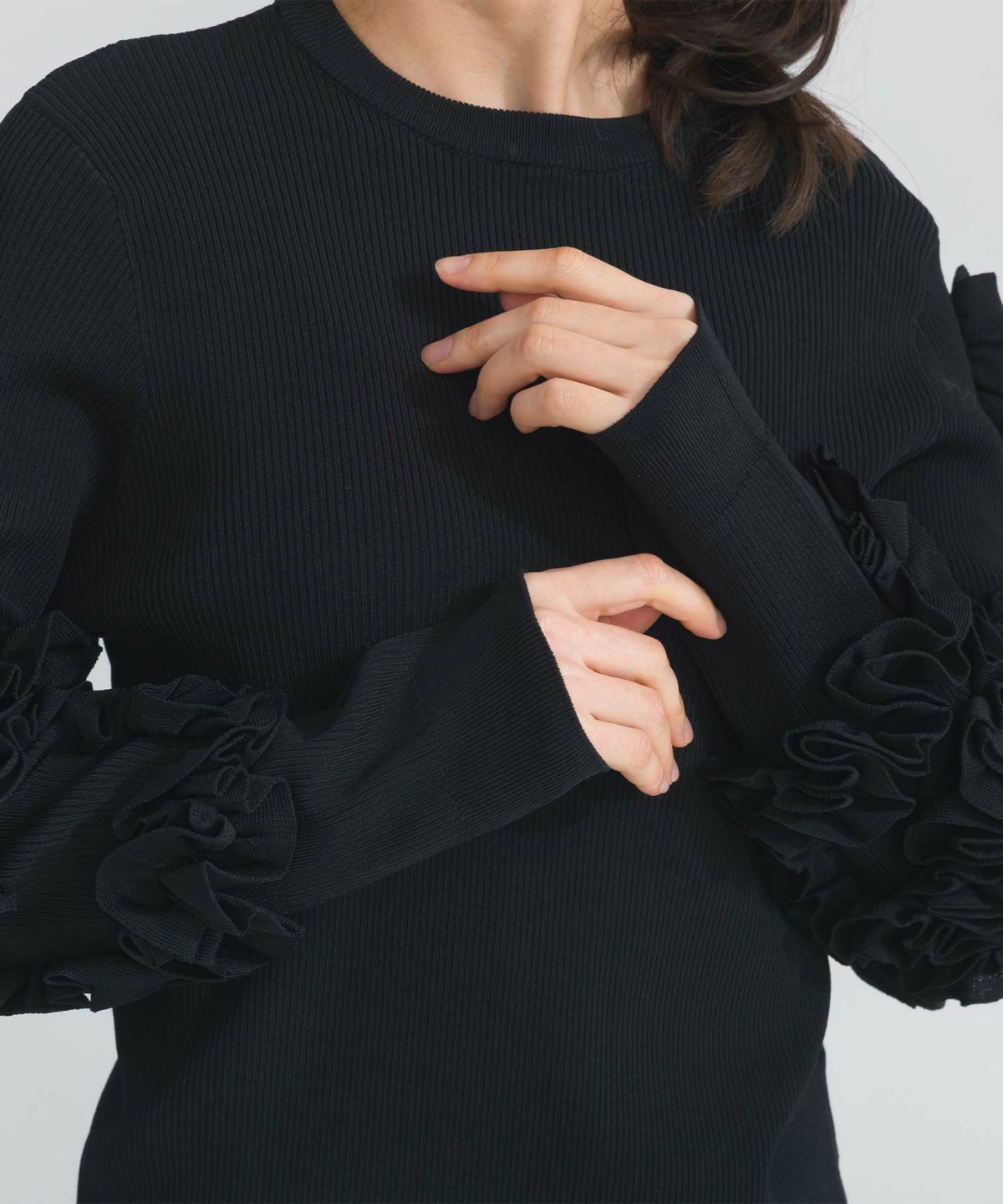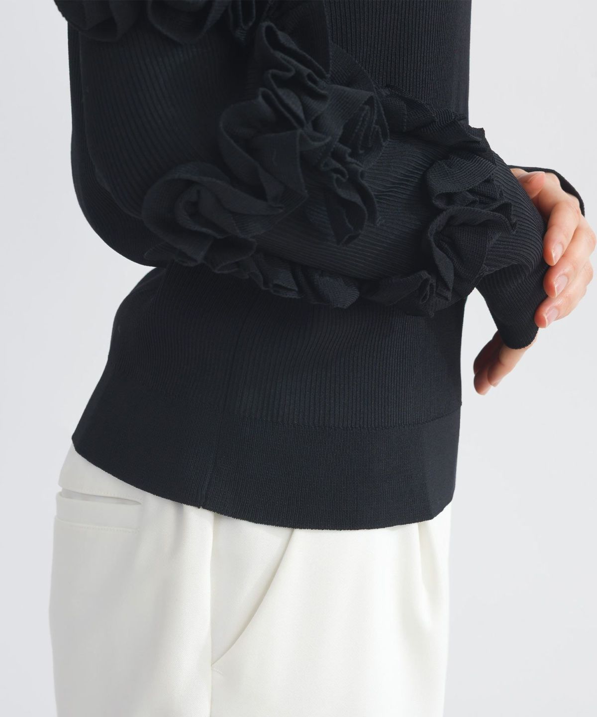 袖フリルリブニット
