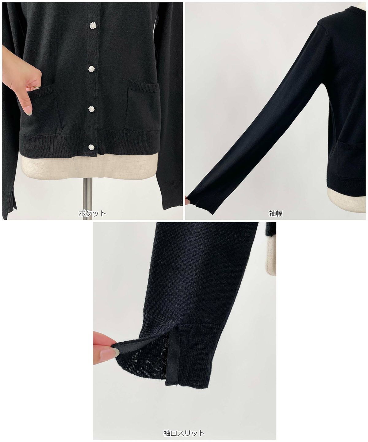 【日本製】パール付きV襟クロップドカーディガン